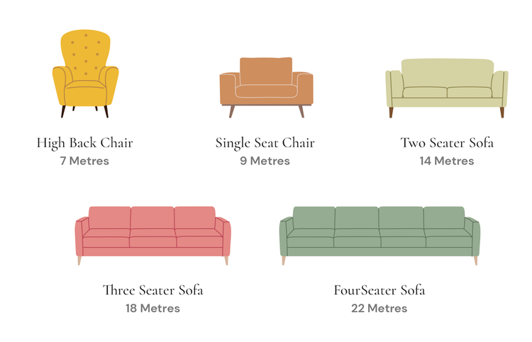 A small or medium sized high-back chair will, typically, require about 6-7 metres.